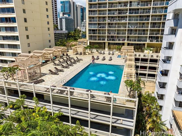 High floor unit on the 42nd Floor! New vinyl plank flooring installed & freshly painted. This "04" stack showcases views of the Ala Wai, Golf Course, and Mountain views. This building features a swimming pool, hot tub, sauna, sundry store, fitness center, and security desk. Enjoy peace of mind with sprinkler-system in-unit, plus the association recently completed their plumbing re-piping project. Situated just two blocks away from Waikiki Beach and close proximity to the International Marketplace, Royal Hawaiian Shopping Center, and an array of top-notch restaurants and stores. Don't miss your chance to own a piece of paradise in this thriving vacation destination. Unit is not in the hotel rental pool.