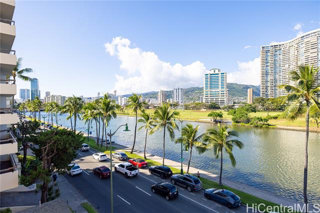 Charming and affordable, this fully furnished 1-bedroom 1-bath residence in Regency Ala Wai offers a practical and comfortable layout with pleasant Ala Wai Canal and mountain views. Large windows lead to a spacious lanai that gives you an extra living space with island breezes. The kitchen is tastefully renovated with gas range and wine fridge - for someone who enjoys home cooking and entertaining at home. Just a few blocks from Waikiki Beach, shopping, restaurants, and coffee shops, with easy access to bus lines and bike share stations. The secure building includes community laundry for added convenience. Maintenance fee includes electricity, gas, water and sewer. Whether you are looking for a personal gateway, first home purchase or an investment opportunity, this unit offers flexibility and solid value in a prime Waikiki location. *Unit is a Leasehold property with long lease that matures on 2044.
