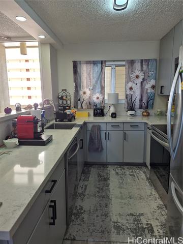 Enjoy Ocean, Diamond Head, and the beautiful Waikiki skyline views from this high floor condo in Waipuna. Renovated 2-bed, 2-bath with modern pallete such as Stainless steel appliances, new lighting, new vinyl flooring with cool tone interior painting. Brand new electrical fuse box and wiring. New primary bath and 2nd bath with updated plumbing. Everything is ready for you, just bring your suitcases. BONUS: Pet-friendly building. 24/7 security guard service in a well-managed building with surfboard and bike storage. Tennis/ pickle ball court, pool, recreation area with BBQ, party room, storage, and 20-guest parking stalls for your visitors.