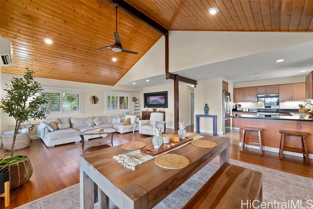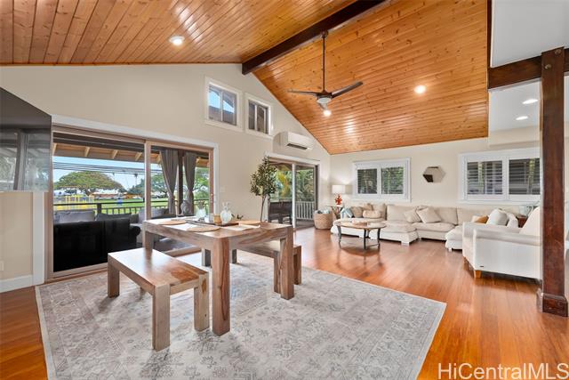 VA assumable loan at 4.25%!! This beautiful 2-bedroom, 2-bath home is located in the heart of Haleiwa town and just moments from a beautiful beach. Live the relaxed North Shore lifestyle just across from the water at Ali‘i Beach Park. This well-maintained two-story home, built in 2012, blends comfort and convenience in one of O‘ahu’s most sought-after beach towns. Inside, you’ll find an open-concept layout with high ceilings, hardwood floors, and modern finishes. The spacious living area connects to a functional kitchen, dining space, and a covered lanai, perfect for everyday living or entertaining. A fenced yard offers room for pets or outdoor fun, and the generous 2-car garage provides ample storage. Enjoy walking or biking to nearby shops, restaurants, and world-class surf. Whether you're looking for a full-time home, weekend getaway, or investment, this is a rare Haleiwa gem!