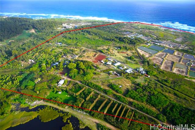 Oceanfront Acreage on Oahu’s North Shore! A rare opportunity to own over 170 acres of land fronting miles of white sand beach. This is one of the last beachfront tracks of land that has yet to be developed. It is located next to Turtle Bay Resort and two Championship Golf Courses, offering you privacy, seclusion, and pristine conditions. You can create your dream private ranch, farm, or beachfront retreat in paradise. The sale includes 11 parcels (011, 019, 020, 021, 022, 024, 026, 030, 031, 046, and 049), three homes, and several other structures on the property. Access to the property is conveniently direct from Kamehameha Hwy. This beachfront property is the last of its kind in Hawaii and has enormous potential and value.