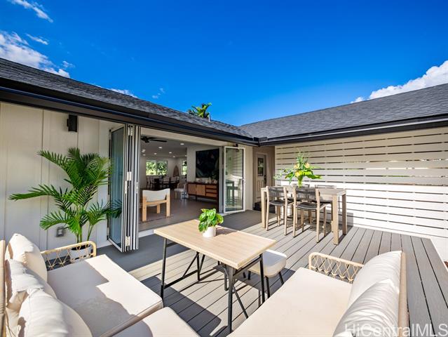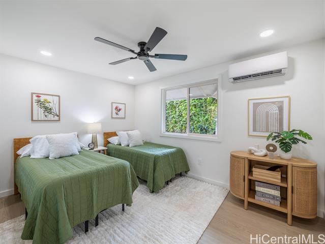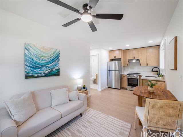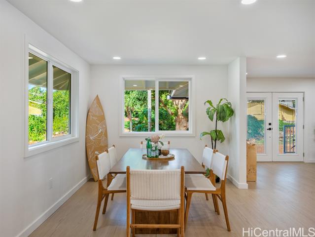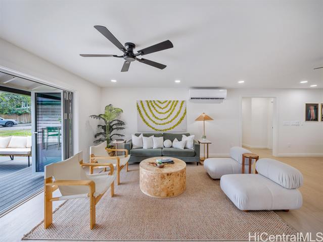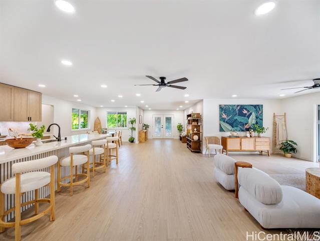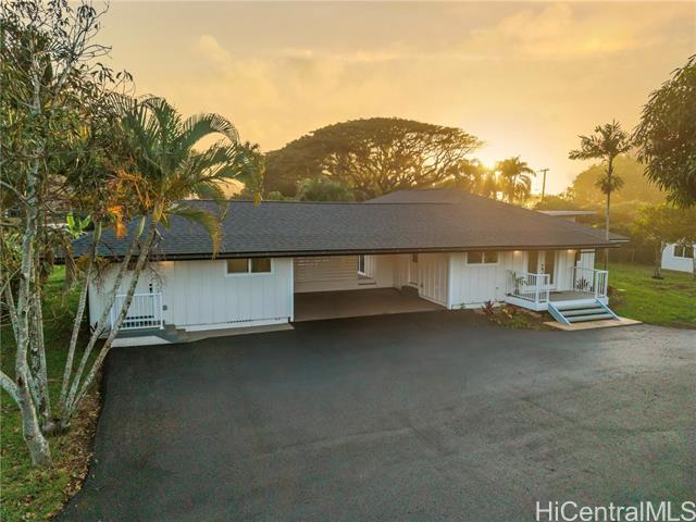 Live the best of the North Shore lifestyle in this fully renovated Haleiwa home, with the perfect blend of modern design, comfort, and flexibility. Completed in 2025, the property sits on an oversized lot and features a freshly paved private driveway, enhancing accessibility and providing ample parking. Abundant natural light and open sightlines define the main living space, with a layout that flows seamlessly from the kitchen to the lanai and yard. Finishes are clean and modern, including wide-plank floors, split AC, and recessed lighting throughout. The kitchen is well-suited for everyday use and entertaining, featuring quartz countertops, a waterfall-edge island, custom cabinetry, stainless steel appliances, and a rarely found butler’s pantry with a dedicated prep space and double ovens. Two bedrooms include en suite bathrooms. The primary suite offers a walk-in closet with custom built-ins and a spa-style bath. A separate one-bedroom unit with full kitchen, bath, laundry, and private lanai provides added flexibility for guests, extended family, or rental income. A unique opportunity to move in today and enjoy all this home has to offer.