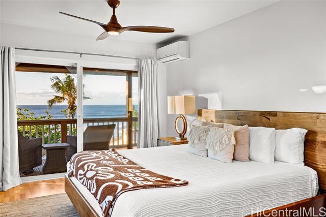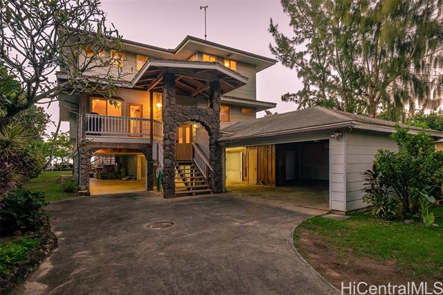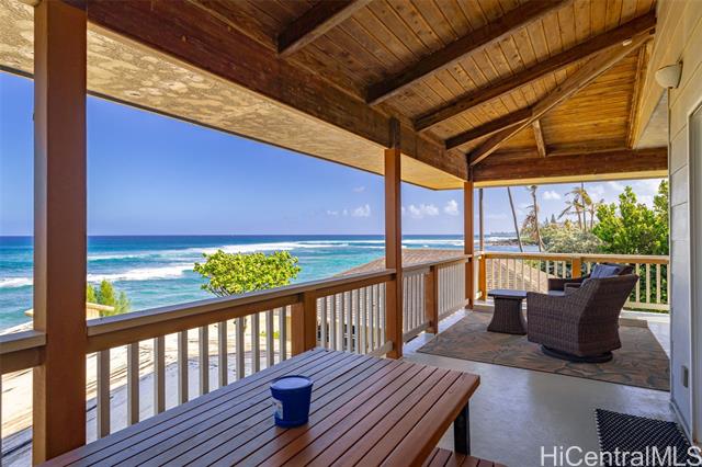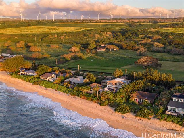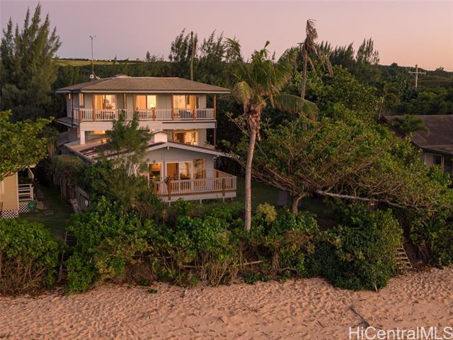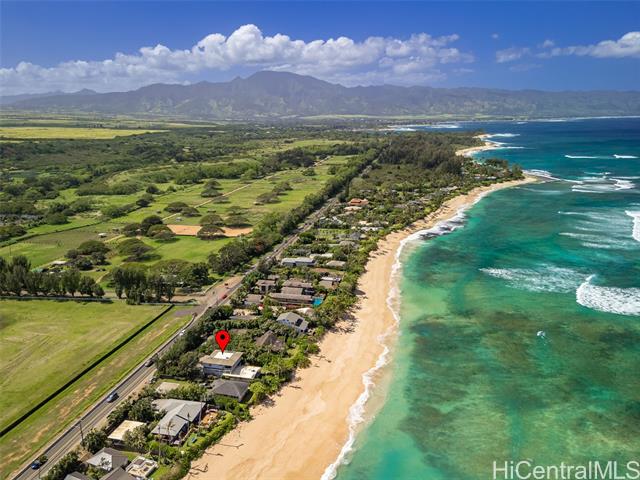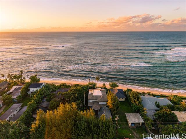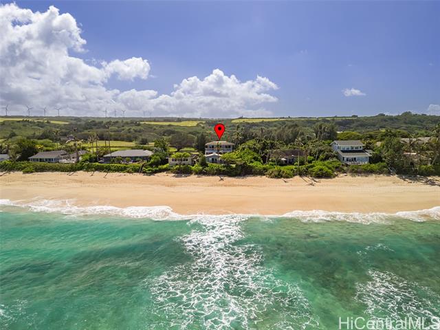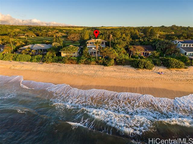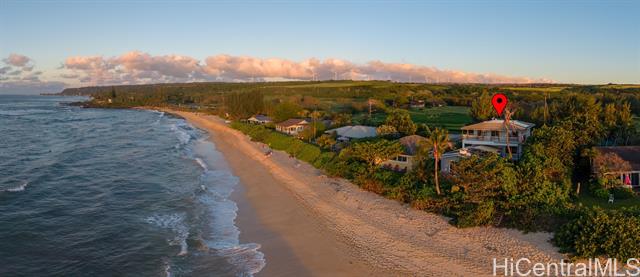 Located directly along the legendary stretch of sand at 61-651 Kamehameha Highway, this rare beachfront property sits on the world-famous Laniakea Beach — one of Oahu’s most vibrant and sought-after coastal neighborhoods. This is a place where the rhythm of the ocean defines daily life, sea turtles bask onshore, and world-class surf breaks like Laniakea and Himalayas fire just steps from your door. The home itself offers a generous footprint and flexible layout, well-suited for multi-generational living or a dual-unit configuration, and is ready for your vision and improvement. With ocean views from nearly every bedroom, the setting delivers something irreplaceable: direct connection to the Pacific Ocean and an address that simply cannot be replicated. This is a property where the value is rooted in land, frontage, and lifestyle. Set behind a gated entry, the residence includes two full laundry rooms, solar hot water, A/C in every room, Wi-Fi throughout, a security system, and is pre-wired for a beachfront hot tub. The expansive grounds offer direct beach access, inviting you to surf, wing foil, kite-surf, or simply walk out barefoot and feel the pulse of the North Shore.