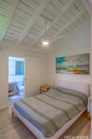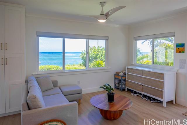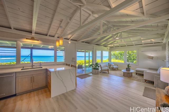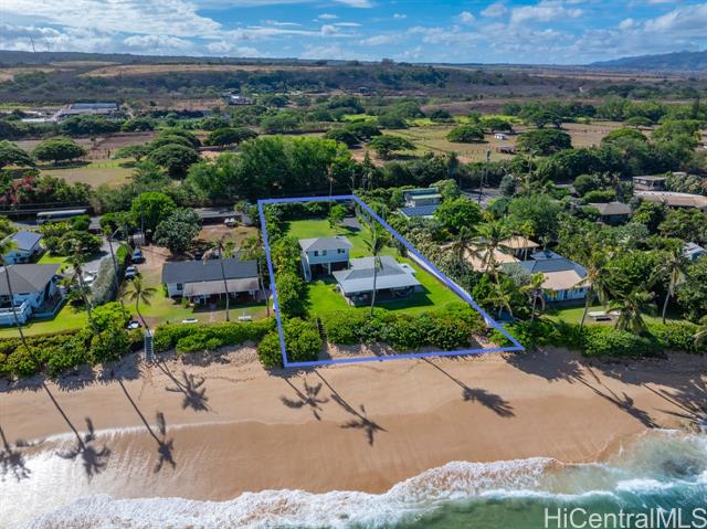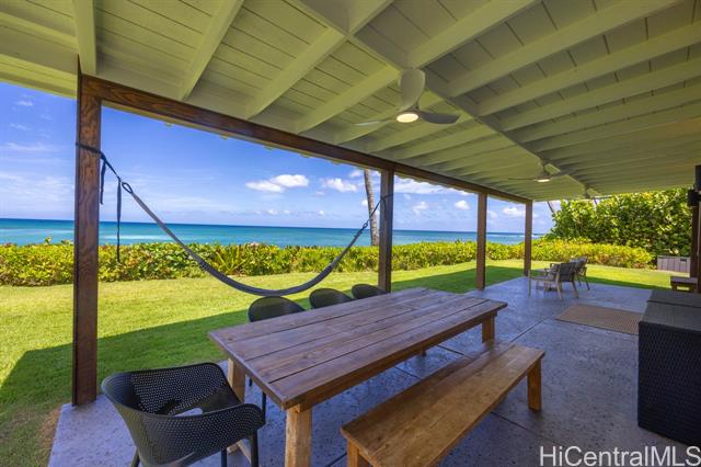 Charming North Shore Beachfront Home with Rec Room -- Move-In Ready, Views and Location! Experience the rare opportunity to own a single-level beachfront home that perfectly blends modern sophistication with timeless island charm. This sunlit retreat features an open-concept layout with vaulted ceilings, AC and designer finishes throughout. Bright and airy bedrooms are complemented by sleek bathrooms, creating a serene and inviting atmosphere. An expansive covered lanai extends the living space outdoors, showcasing panoramic ocean views from Ka'ena Point to Waimea Bay. Enjoy the ultimate in privacy with a custom mahogany security gate, lava rock walls, mature tropical landscaping, commercial-grade irrigation and wood fencing. Additional features include dual outdoor showers, and direct access to a quiet stretch of coastline known for world-class surf and abundant wildlife. Sitting on nearly 1/2 acre with 91 ft of ocean frontage, this property offers incredible potential for future expansion. Fully furnished option is negotiable. This is more than a home—it's a private sanctuary capturing the essence of island living and a unique investment opportunity on O'ahu’s iconic North Shore.