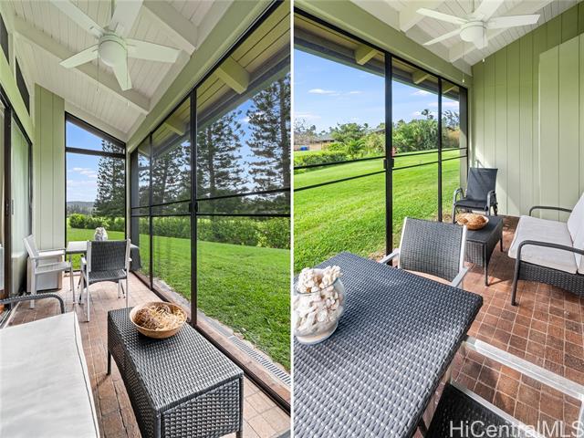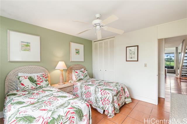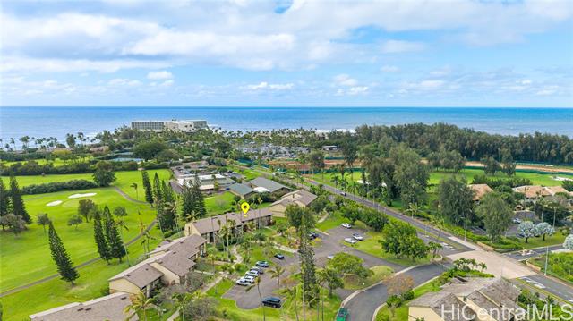 Highly desired ground floor unit and legal short-term rental in Kuilima Estates West at Turtle Bay on O?ahu’s North Shore. Ideally positioned on the 1st tee of the Fazio Course and just steps from the clubhouse, this 2-bedroom, 2-bath + loft home offers premier golf course frontage with beautiful views. The screened lanai enhances the indoor-outdoor island living. The well-maintained interior features tile flooring throughout, granite countertops, updated appliances, window A/C units in both bedrooms, ceiling fans, and a full-size washer and dryer. The flexible floor plan accommodates up to six guests with one king bed and four twin beds, offering versatility for personal use or short-term rental occupancy. Enjoy access to multiple swimming pools, BBQ areas, tennis, pickleball, and basketball courts, championship golf courses, and nearby beach access within the world-renowned Turtle Bay resort community. Whether used as a vacation retreat, second home, or legal short-term rental, this property offers the opportunity to experience the best of North Shore living.