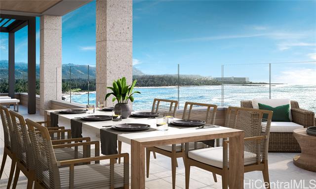 Welcome to The Malama, the premier release in Hale 1 and a rare opportunity in the first pre construction phase of North Shore Club. Hale 1 Residence #2 is an expansive three bedroom, three and a half bath oceanfront residence capturing sweeping beachfront views and spectacular Pacific sunsets. Designed with kama'aina sensibility and modern island elegance, dramatic 27 foot double sliding glass doors open to a private stone tiled lanai overlooking the ocean for seamless indoor outdoor living. The chef’s kitchen features a waterfall quartzite island, while warm textures and refined finishes create a relaxed yet sophisticated atmosphere. Each bedroom includes a private ensuite bath, including a primary suite with lanai access and a spa inspired bath with soaking tub and walk in shower. Additional features include direct elevator entry to a private foyer, covered parking, private storage, and a full laundry room. Club Membership provides access to North Shore Club’s oceanfront amenities including resort pools, beach bar, fitness and wellness hales, spa with sauna and cold plunge, the David McLay Kidd golf course, ocean view clubhouse, and curated outdoor experiences.