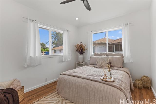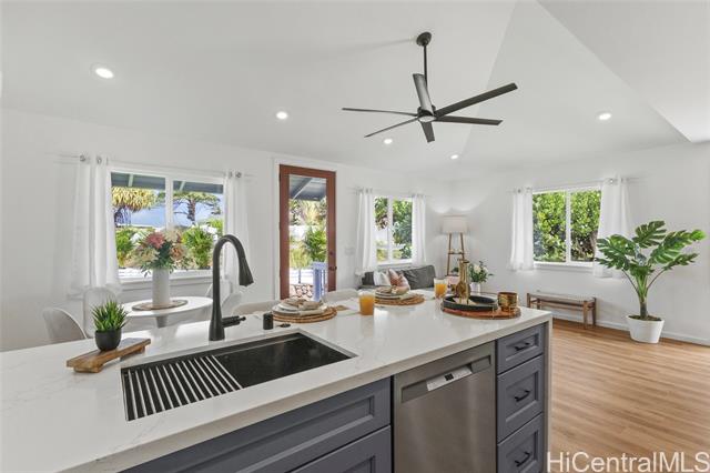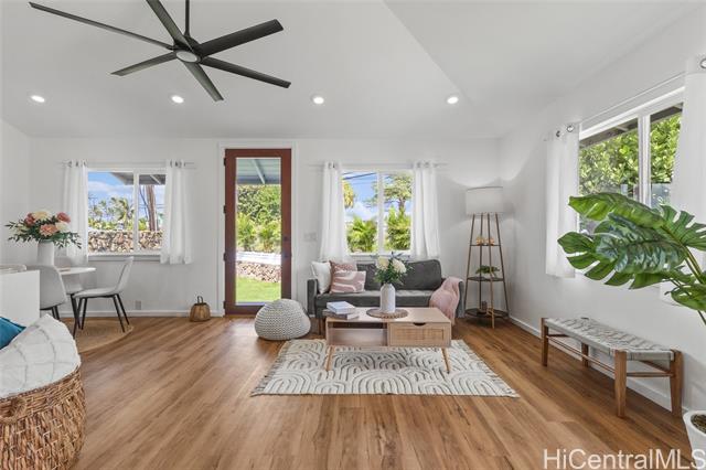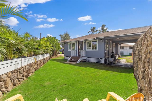 Nestled in the heart of Laie on Oahu's world-famous North Shore, this inviting three-bedroom, two-bathroom home offers the perfect balance of simple comfort and island living. Surrounded by lush tropical landscapes and just minutes from pristine sandy beaches, the property provides both relaxation and convenience. Newly renovated, you will find a bright, open concept living space with cooling trade winds and abundant natural light from large windows located throughout the home. Recess lighting, split AC, a modern kitchen that flows seamlessly into the living area, are just a few of this quaint property's highlights. The primary bedroom with private bath, along with two additional bedrooms and a second full bathroom, provides extra space for family or guests. Located near Brigham Young University-Hawaii, the Polynesian Cultural Center, and just a short drive to the surf towns of Sunset and Haliewa, this home places you in one of the most desirable communities on island. Whether you are looking for a family residence, a vacation retreat or investment property, this Laie gem offers an authentic North Shore experience with comfort and charm.