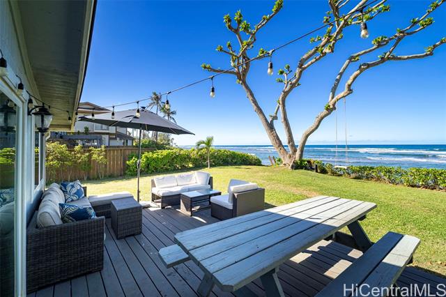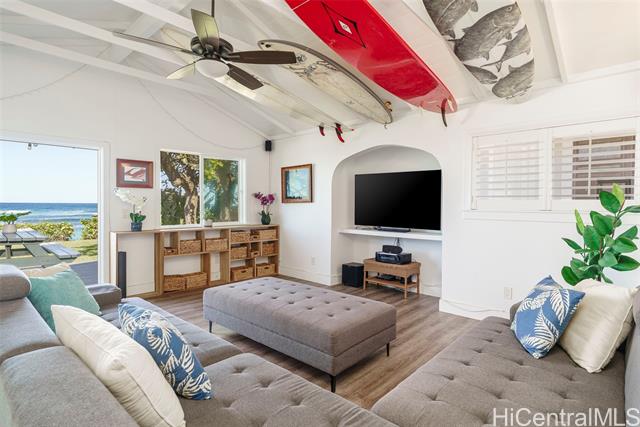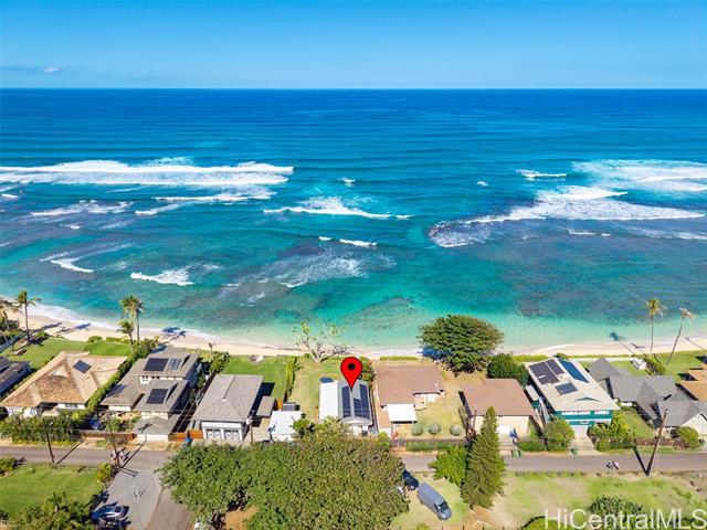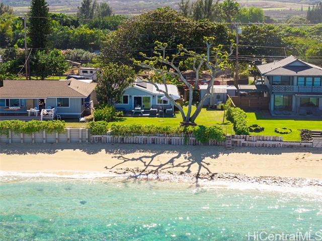 This tastefully renovated, turnkey beachfront cottage awaits you on a highly coveted, serene stretch of Mokuleia. Situated on Crozier Drive, a peaceful, waterfront lane reminiscent of vintage Hawai'i and away from the North Shore’s traffic bottleneck, yet only an easy 45-minute drive to Honolulu International Airport. The charming 2-bedroom, 1-bath home is positioned perfectly between two uncrowded surf breaks, with a picturesque False Kamani tree framing the ocean view. The home has been thoughtfully remodeled and features 24 owned photovoltaic panels, two Tesla Powerwall batteries, and split AC for comfort beneath a couple years young roof. The sandy beach frontage where Green Sea Turtles frequently visit is perfect for long walks and majestic Humpback Whales breach offshore in the winter. The substantial offshore reef system creates a natural wave buffer, creating a tranquil, family-friendly sandy swimming cove out front even during the winter surf season. This is more than a home; it's a legacy—come experience the North Shore aloha that makes this location a favorite of those who truly know Oahu. First Open Houses Saturday 12/20 and Sunday 12/21 from 2-5:00.