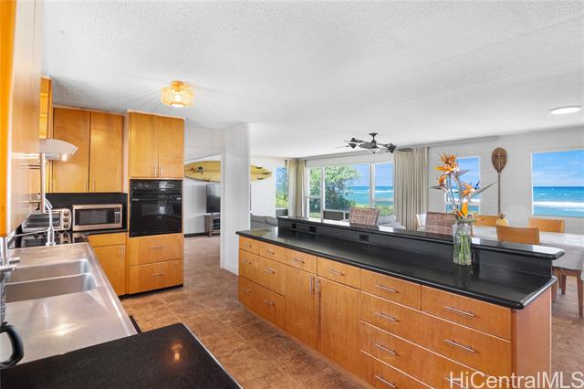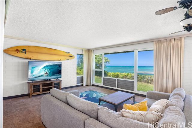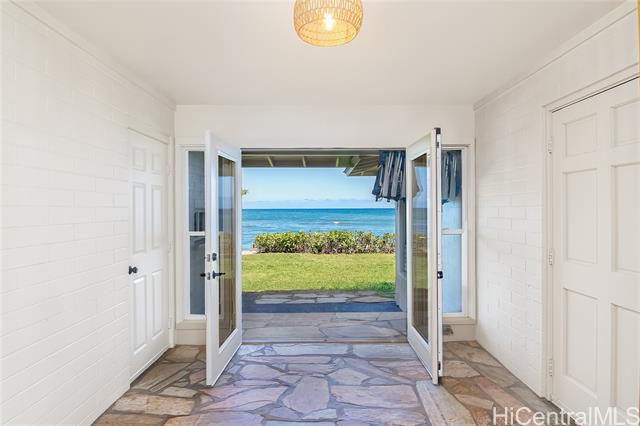 Discover the epitome of coastal Hawaii living in this beautiful turn-key furnished North Shore oceanfront beach house located on private Crozier Drive in Mokuleia. Crozier Dr. is one of the most sought-after areas on the island and is known for its stunning beaches and laid-back lifestyle, making it the ideal location for your primary residence or vacation retreat. Located directly on the famous "Sylva's Channel" surf break. Rare opportunity to own a home with a legal seawall & an expansive 114 linear feet of sandy beachfront allowing you to indulge in swimming, snorkeling, or simply lounging in the sun right at your doorstep. Hiking trails, polo fields, skydiving, and local dining experiences are all just a few minutes drive away. Avoid the North Shore traffic that other neighborhoods in the region battle as this property allows easy access to town giving you a perfect blend of seclusion and accessibility. Don't miss your chance to own this one-of-a-kind large oceanfront property that exudes "Old Hawaii Country Tropical Retreat" in one of the most desirable locations on Oahu.