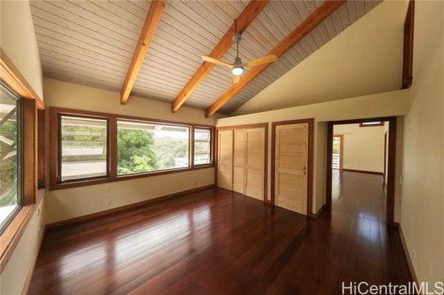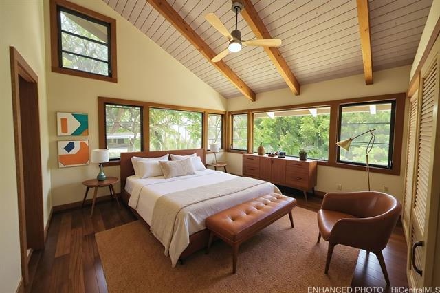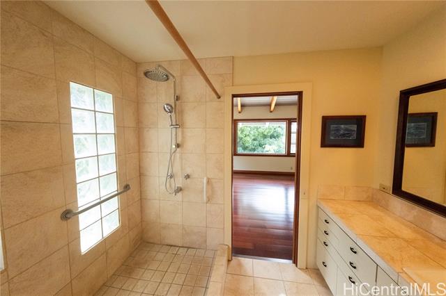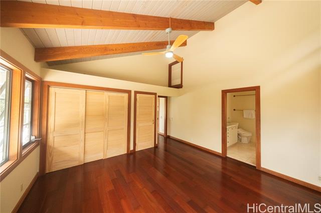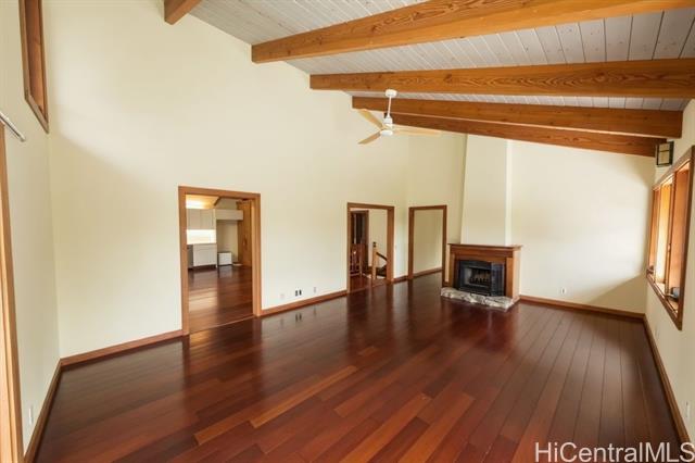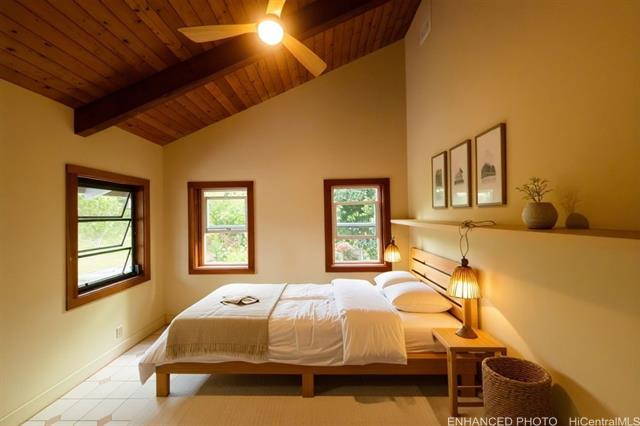 A secluded entrance ensures privacy for this country home, surrounded by mature fruit trees that create a lush, natural and peaceful setting. This home offers an incredible blend of architectural design, privacy, & serene surroundings. This 3bd, 3bath, differs from tax records due to thoughtful expansions & upgrades. A true labor of love! Custom details & finishes such as a mantle w/ wood burning fireplace and unique Japanese inspired bth. The downstairs could be a large in-law/rental unit with its own entrance. Floor plan includes expansive living areas that flow seamlessly, great for relaxed island living. The open-concept layout, vaulted ceilings, & large windows, brings the outdoors in. Enjoy the mt views from the partially & covered decks on both levels, or play a round of basketball outside. Room to add your own personal touches to call this place your own home. 24 PV panels, new solar thermal hot water heater. 10 mins from the most famous surf /beaches in the world. Enjoy an abundance of fruit trees: lychee, avocado, tangerine & orange, banana, and breadfruit trees! Sold As Is.