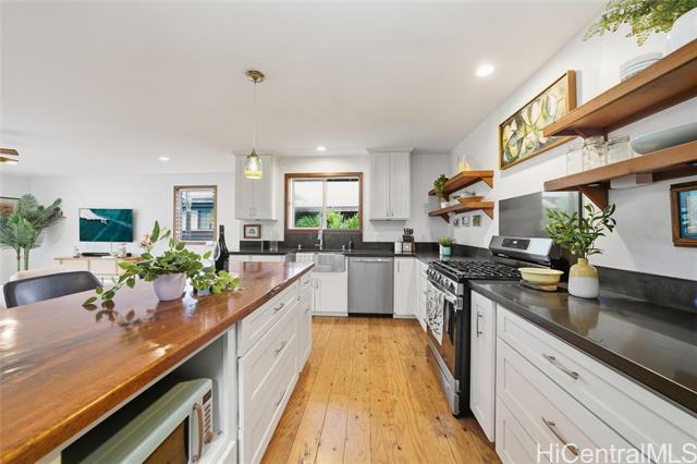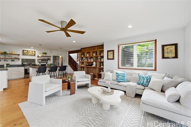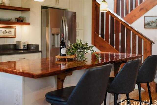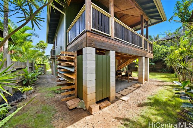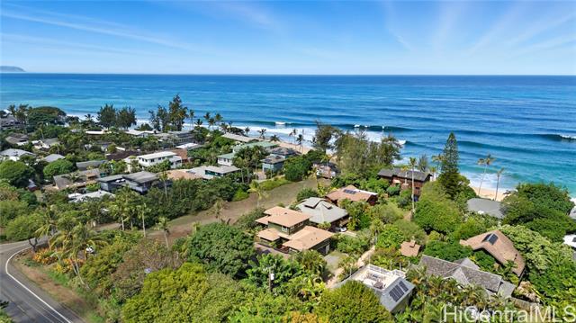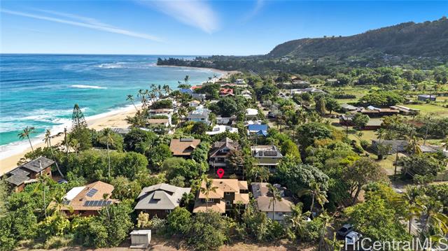 Location, location, location! Beautifully renovated legal duplex with deeded beach access in the desirable Rocky Pt neighborhood. Tucked off the main road on a quiet private beachside lane, it’s somehow both hidden and central to one of the North Shore’s most versatile beaches. Whether you surf, paddle, snorkel, or stroll the sand, Rocky Pt offers it all. Walk to world-famous waves like Sunset Beach and Pipeline, or to lesser-known, uncrowded spots. Adjacent bike path provides safe access to school, neighborhood park, Ted’s Bakery, Foodland, Sharks Cove, and more. In 2016, the original home was lifted, expanded, and renovated with thoughtful, eco-friendly finishing touches throughout. Designed to harness cooling trade winds and scenic views, the primary home has 3 beds, 1.5 baths, and a covered deck that's perfect for relaxing and entertaining. The second unit is a charming 1 bed, 1 bath—ideal for guests, in-laws, or rental income. Covered parking under the house, office area, outdoor showers, and ample room for home gym, workshop, surfboard storage, etc. Embrace the laidback North Shore lifestyle at this exceptional Rocky Point home where comfort and coastal living come together.