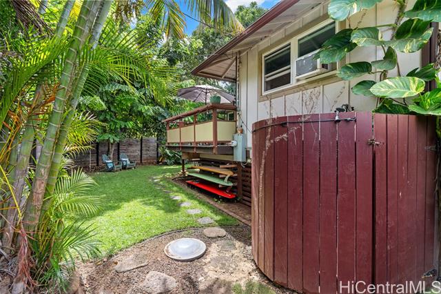 Dream location at Rocky Point with private beach access to one of the world’s most iconic surf breaks! This two bedroom one and a half bath offers a flexible layout with a bonus room. The two car garage has a separate studio above for guests or rental potential. Gated driveway and fully fenced yard provide privacy and security, while the property features an incredible mature mango tree, outdoor shower, septic system, and solar PV for sustainable living. Enjoy seamless North Shore lifestyle with easy bike path access connecting you to Sunset, Pipeline, and all the 7-Mile Miracle has to offer. The combination of location, amenities, and community makes this property truly special—a dream opportunity for surfers and ocean lovers seeking to live in one of Oahu's most sought-after neighborhoods.
