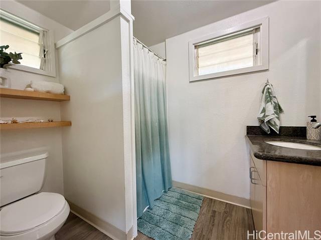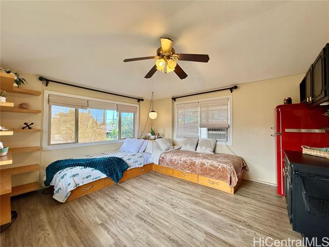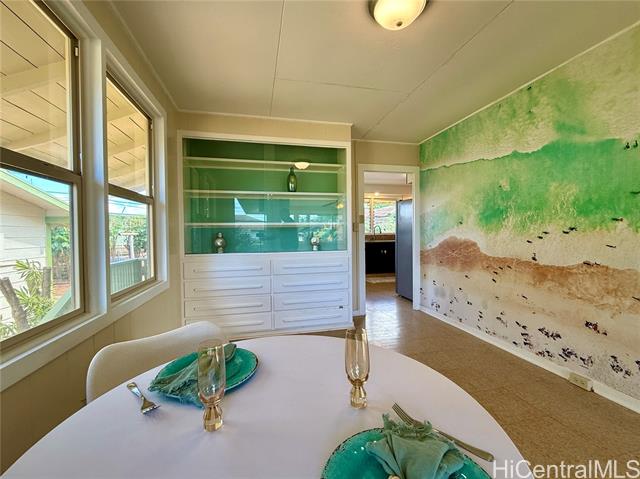 You seriously don’t want to miss seeing the charm and character of this roomy (1,222 SqFt) two bedroom, one bath home! From the curvature of the concrete steps leading to the front door, to the entry with its angled walls and built-ins, this home gives off a very warm welcome to Hawai'i living! There is a large living room, separate dining room (or use as a home office), and a spacious kitchen with eat-in nook. We also have a detached studio with its own full bath (240 sqft) perched above the 1-car garage, AND a separate laundry room downstairs, with an attached half bath. Additionally, there is a custom-built storage shed, as well as lots of room to park on this huge 9,984 square foot lot that feels like it's on a corner, but it’s on the bend in the road so there's no constant stopping and accelerating at a stop sign. The septic system was installed around 2011 and recently pumped. The home was tented/fumigated in April 2025 and comes with a 5-year warranty (to be provided for review). We're located in the neighborhood behind Paalaakai Bakery and Paalaakai Market for your convenience. Schedule your showing today!