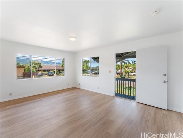 This charming 3-bedroom, 1.5-bath home offers 908 sq. ft. of interior living space, plus an additional 90 sq. ft. of washroom and storage area adjacent to the carport. Built in 1994, the home sits on a 7,067 sq. ft. R-5 corner lot and features a covered, 2-car carport with storage. Recently refreshed with interior and exterior paint and brand-new flooring throughout, the home is move-in ready! Enjoy stunning views of the Waianae Mountain Range, and take advantage of the prime location just down the street from the beloved Paalaa Kai Bakery, as well as minutes from sandy beaches, local parks, and the historic Waialua Sugar Mill with its shops, cafés, and weekend market. Waialua’s small-town charm, relaxed pace, and close-knit community make this location highly desirable.