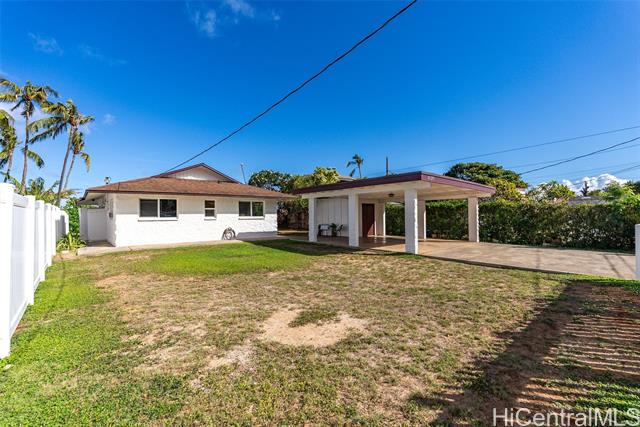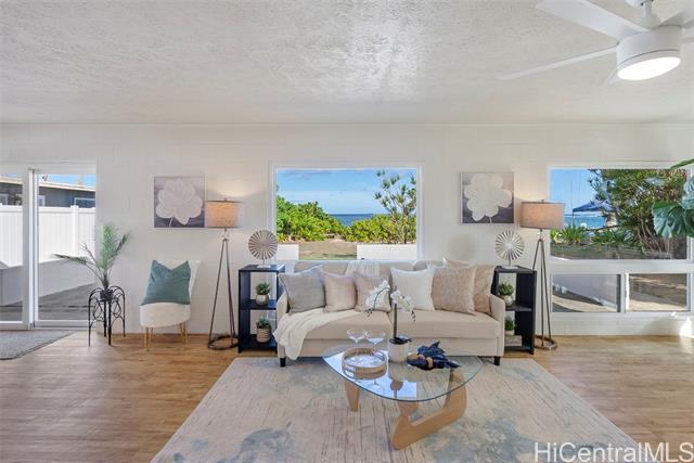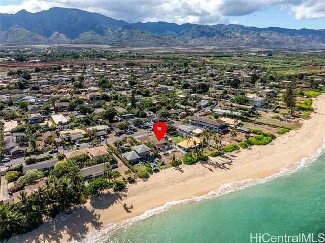 RARE CLASSIC SINGLE LEVEL BEACHFRONT!!! Welcome to a timeless single-level beachfront residence on the coast of Waialua. Original owners meticulously cared for this treasured property and are offering on the market for the first time EVER! This perfect beach house features 3 bedrooms, 2 full bathrooms (primary ensuite) situated on an expansive level lot 9,897 sq ft private lot that stretches from quiet Kahaone Loop all the way to the sandy Waialua shoreline. 2-car carport features an extra storage room and driveway for extra parking. Generous front and back yard spaces with a patio create an idyllic setting for indoor/outdoor living. Enjoy quiet peaceful mornings with coffee or host large gatherings with enough space for volleyball by the ocean. Thoughtfully upgraded with a newly renovated primary bathroom (2024), fresh interior and exterior paint, 2012 kitchen and bath renovation with roof and window replacements. Window A/C units provide added comfort in the bedrooms. Everyday feels like a vacation from this wonderful home! Close to Haleiwa Town and a truly rare find that will not last!