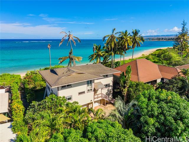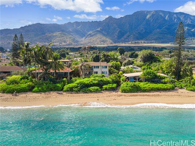 Experience the best of North Shore living in this charming two-bedroom, two-bath oceanfront home set on one of the most breathtaking stretches of beach on Oahu. Nestled in a quiet and peaceful location, this residence sits directly on a pristine sandy shoreline—ideal for morning walks, sunset watching, surfing, fishing and the oceanfront lifestyle. Thoughtfully designed to capture sweeping ocean views, the home offers an inviting blend of comfort and island charm. As one of only two units in an intimate CPR—with no fees—you’ll enjoy the privacy and freedom of a residence with the ease of low-maintenance living. This home sits on a large lot with 4,748 sq. ft. of common area, 2,145 sq. ft of exclusive oceanfront land and 31 ft. of exclusive ocean frontage. The home itself offers 1054 sq. ft. of interior living area. Offering exclusivity, privacy and direct ocean access. Property is a CPR in a 3 story building consisting of 2 units with this layout: Ground floor is Parking & Laundry, Second floor includes this 2 bedroom 2 bathroom unit and the third floor is a 3 bedroom 2 bathroom unit.