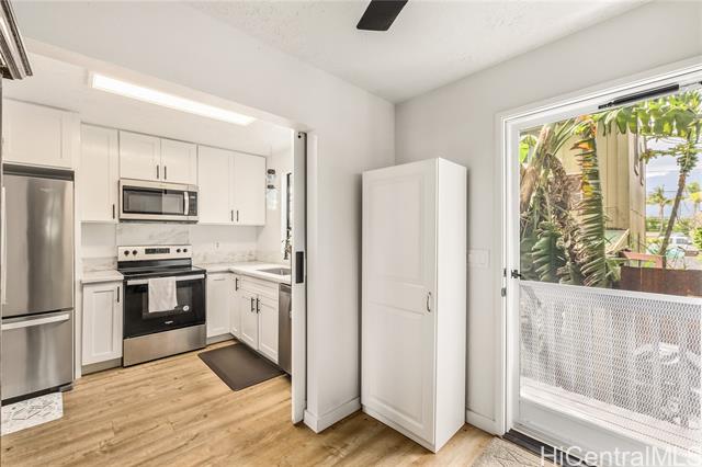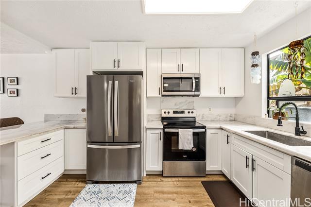 Enjoy living in this North Shore beach community of Aweoweo where the sand, surf and sunsets are just around the corner! Located 2 blocks from the sandy beaches of Waialua, this spacious townhouse has been well cared for and was remodeled in 2022. Waialua Palms is a pet-friendly complex and offers a split-level design with over 1,000 square feet of space to include 2 bedrooms, 2.5 bathrooms along with a bonus den or study room conveniently located on the first floor. Also included, 2 nearby open parking stalls (tandem) for your vehicles with street parking nearby also available. With majestic Mount Ka'ala behind you & the beautiful blue Pacific ocean in front of you, nature abounds. Come see today and start enjoying the relaxed country feel of the neighborhood.