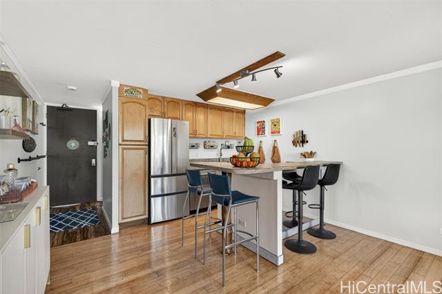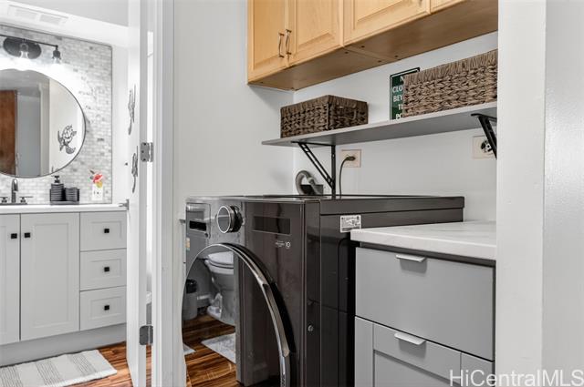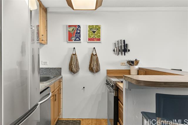 Welcome to your serene island retreat at 68-055 Akule St, #212 Waialua, HI! This charming 1-bedroom, 1-bath condo offers 640 square feet of thoughtfully designed living space, exuding comfort and convenience. Located in a desirable area, this unit is perfect for those seeking a relaxed lifestyle close to the beauty of Hawaii's North Shore. Step inside to discover a welcoming living area, complemented by the modern touch of a recently renovated bathroom, ensuring both style and functionality. The open layout creates a bright and airy ambiance, with ample space to unwind or entertain. The in-unit washer and dryer provide added convenience for everyday essentials. Situated in a walk-up building with an elevator, accessibility is a breeze, making this home suitable for all lifestyles. With its central location, this property allows you to enjoy nearby beaches, shops, dining, and all that the local community has to offer. Don’t miss out on this fantastic opportunity to own a comfortable and convenient piece of paradise. Schedule your private tour of this beautifully maintained condo today!