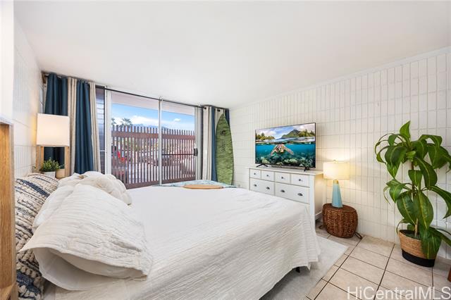 Escape to laid-back North Shore living at Mokuleia Sands. This ground-floor condo offers easy walkability and island comfort just steps from the beach. The renovated bathroom brings a fresh, modern touch, while the kitchen features a warm butcher block countertop and open layout ideal for daily living. A spacious main lanai extends your living area outdoors, perfect for morning coffee or evening relaxation, and a second private lanai off the bedroom adds a breezy retreat. Being on the first floor means no stairs, effortless access, and a larger outdoor space unique to this level. Mokuleia Sands is a well-kept, fee-simple building with a expansive rooftop lanai, a small fitness room, BBQ area, dog run, and on-site manager. Enjoy the peaceful Waialua lifestyle—where ocean air, bike paths, and beach parks are part of your backyard. This move-in ready condo blends modern updates with the charm of true North Shore living.