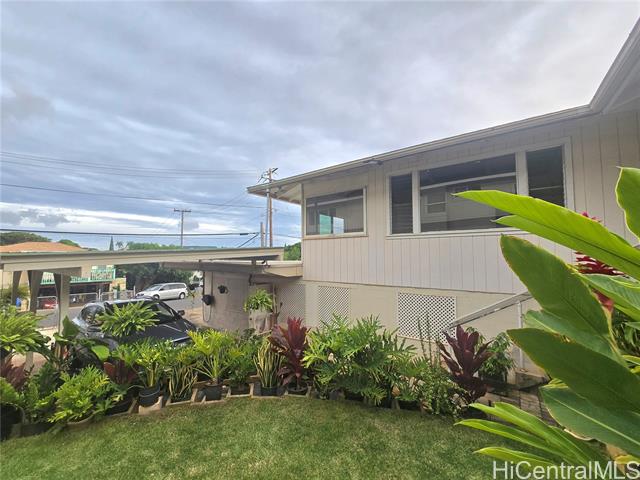 Unique Large home for family or multi-family use located in a highly desired Aiea. 1) Enter and be immersed in a very grand, wide open, vaulted ceiling, main living room w/open kitchen. Three bedrooms, one full bathroom w/a large sized primary bedroom w/its own full size bathroom. 2) Attached 3 bedroom section w/full bathroom and wet bar. 3) Side attached one bedroom unit or large storage area w/covered sink area. 4) Features a HUGE garage and storage area, Truely a "Man's Garage" w/alot of potiental that can be further improved and custom tailored. 5) HUGE carport 5) Sizable enclosed back patio area and front upper deck area. 6) Extra storage areas throughout the home. 7) A lot of parking. 8) Views of to Aloha Stadium. 9) Fruit trees in back: Pomelo (3), Avocado (1), Mango (1), Calamansi (2), Jack Fruit (1), Guanva (2). This home has has been loved as-is and has a lot of further upgrade potentials! Live in as-is or make improvements to take this home to an entire other level of enjoyment. (Square foot does not conform to tax records. Please do your own due diligence and inspections). 1st Open House Sunday 2pm-5pm Sunday 11/2/25.