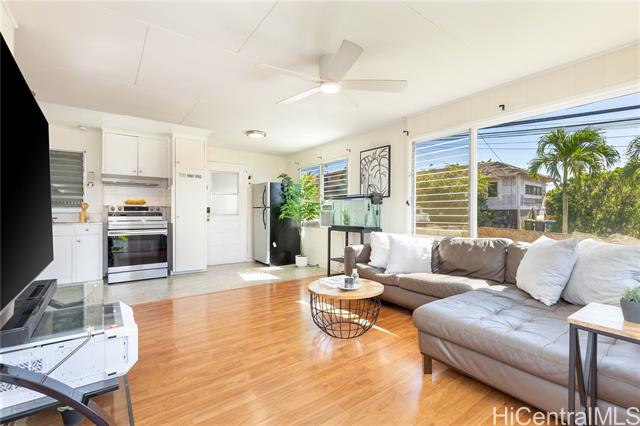 Discover the delightful charm of this detached single-family home located in Aiea. This 3-bedroom, 1-bathroom residence offers 720 square feet of cozy living space, nestled on a generous 3,700 square foot lot, with potential for expansion. Step into a beautifully maintained level home featuring a new roof in 2023 and fresh exterior painting, ensuring peace of mind for years to come. The open floor plan seamlessly blends indoor and outdoor living, providing a versatile space for relaxation and entertaining. A generous amount of parking for vehicles and adventurous toys. The wrap around yards allows pets to roam, gardens to grow, and parties to be hosted. The location is prime, close to shopping centers, eateries, activities, public transportation, or commuting to freeways and major thoroughfares adds to the convenience. Come experience condo size living in a single family home environment. Open House Sun Nov 16 2-5pm.