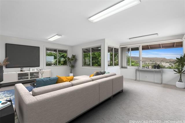 NEWLY painted interior, NEW carpet in living/dining room & all bedrooms & NEW sheet vinyl in kitchen and bathrooms! Rediscover the potential of this well maintained 3-bedroom, 2-bathroom home with views of Pearl Harbor from your living room! Featuring one level area, this spacious floor plan has lots of natural light, creating a warm and inviting atmosphere. Additional highlights include a large kitchen, ample storage space in downstairs bonus area and a low-maintenance yard with mango and avocado trees! Conveniently located near Pearlridge Shopping Center, restaurants, parks and freeway access, this home offers the perfect blend of comfort and convenience! **Front of house/garage is on Hakina St; a few photos have been virtually staged(enhanced); # of Bathrooms do not match tax records**