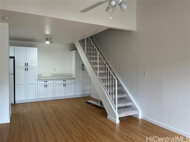 NEW kitchen & downstairs bath cabinets, countertops and new vinyl planks in downstairs bedroom. Refinished shower stall downstairs. Crosspointe is located close to the skyline, freeway on/off ramp, Target, Pearlridge Mall, Pearl Harbor, Camp Smith, restaurants and more. CONVENIENCE is the key! This split level townhouse offers privacy with one primary bedroom downstairs and another loft style upstairs and private courtyard to relax or BBQ with friends & family. Amenities offered are: pool, BBQ, gym, playground, security, rec area for parties and sand volleyball.
