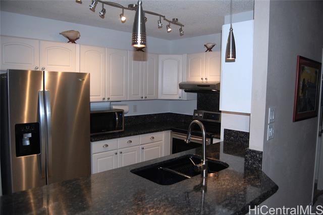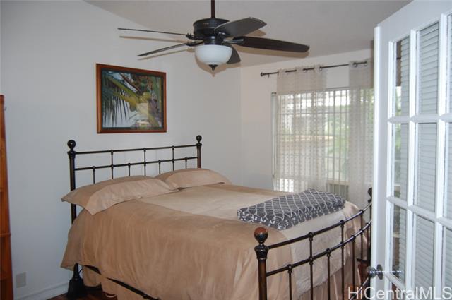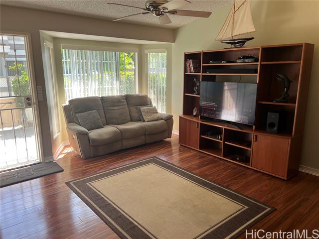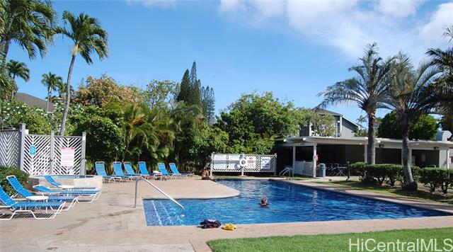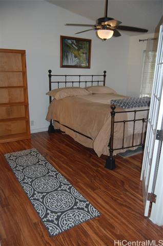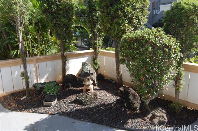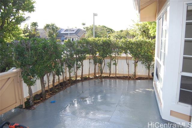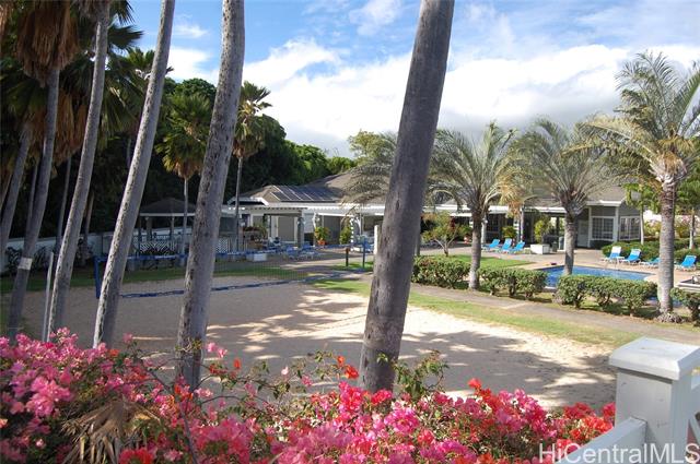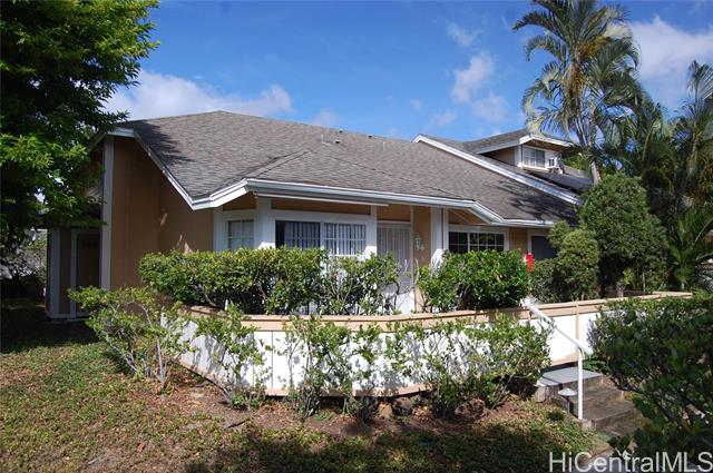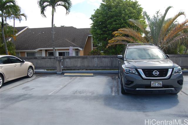 Highly DESIRABLE & RARELY available corner end unit, single level ground floor with NO UPSTAIRS NEIGHBOR. Featuring VAULTED CEILING & spacious 300 ft courtyard. Private facing open area. Close to guest parking & 1 covered & 1 open stall. Upgrades 2025 painted interior. 2022 Primary bath glass door and shower enclosure with ceramic tile & base. 2020 Living room, bedroom, hall upgraded with koa laminate flooring. 2019 New Decora type outlets. 2019 Attic upgraded with fire resistant steel door & 3/4 inch plywood architect grade flooring & shelves. 2012 New kitchen cabinets, new 1 foot x 1 foot Travertine Tile in kitchen with crown molding. Crosspointe is a gated community with on site 24/7 security and close to town, shopping and Pearl Harbor. Heated salt water pool, weight room, sand volleyball court, meeting and private party areas and 2 electric car charging stations.
