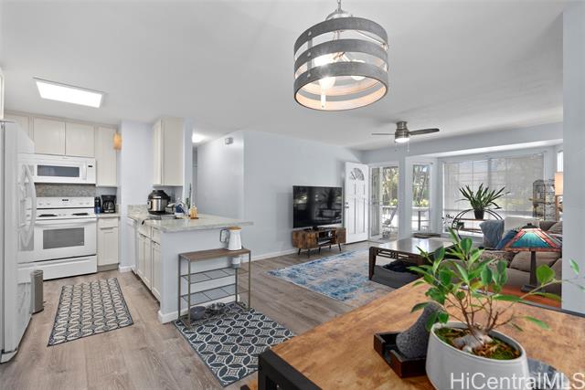 NEW LISTING!! Beautifully maintained ground-floor corner unit with 2 bdrm/2 baths, and 2 parking stalls at Crosspointe. This single-level end unit offers easy living in a private, peaceful and convenient gated community. Updates include a refreshed kitchen and bathrooms plus vinyl flooring throughout. Resort-style amenities include a swimming pool, fitness center, BBQ areas, and beach volleyball court, ideal for relaxing or entertaining. Conveniently located near the H 1 freeway entrance and across from Stadium Mall and Ice Palace for dining and entertainment. A wonderful opportunity for homeowners or investors seeking comfort, convenience, and community.