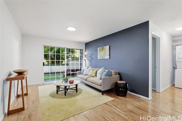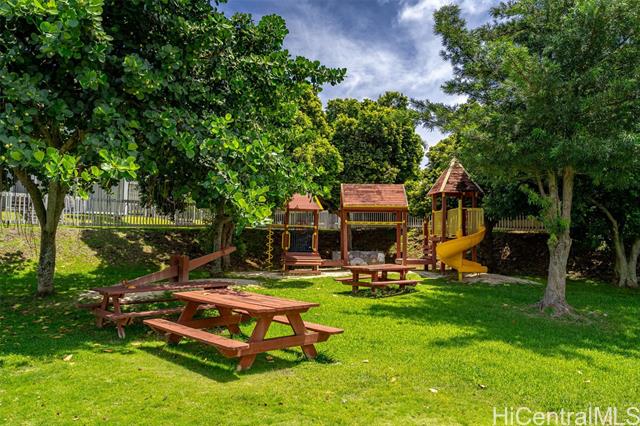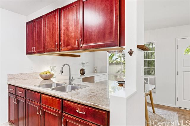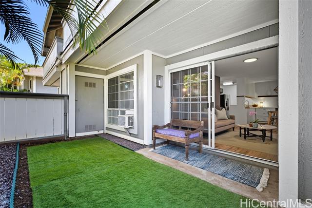 Own this wonderfully kept, spacious 1 bedroom 1 bathroom with TWO parking in the desirable Crosspointe. With convenience on and off the freeway, shopping, dining, airport, Pearl Harbor and more, live close to everything you need. Large usable yard space, create your own peaceful living. This home includes granite countertops, new kitchen fixtures, new bathroom fixtures, stainless steel appliances, a built in cabinet-side board in the dining area with floating shelves. Unit's location is ideal. It's private, tucked away in a corner with garden views. Move right in now at a great price. Crosspointe is a secured and gated community. Amenities are many with its large pool, hot tub, BBQs, playground, and a sand Volleyball court. VA approved.
