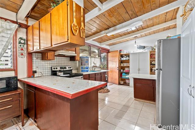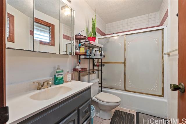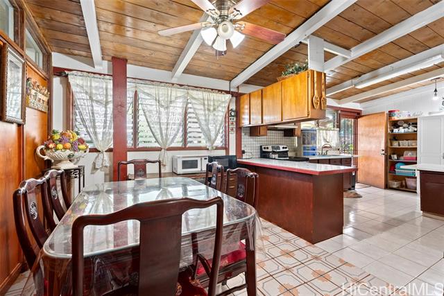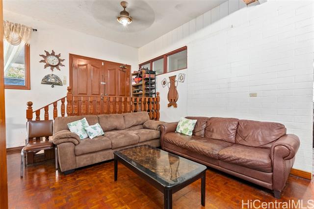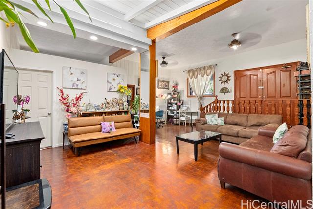 This beautiful multi-generational living 2-story home is available for those investors and/or primary occupant buyers located in the heart of Pearl City at Momilani neighborhood. There are three living areas with full kitchen/kitchenette and laundry. A spacious 3 bedroom with 2 full baths at the lower front of the home with ceramic tile flooring, updated bathroom in the primary room and a large bedroom with a window-type AC unit along with an enclosed storage area within the home that can be turned into a room making it a possible fourth bedroom if need be. The 2 bedroom with 1 full bath at the lower back with ceramic tile flooring, updated bathroom and kitchenette. The 3 bedroom with 2 full baths at the upper level with ceramic tile flooring, updated kitchenette and an enclosed lanai for a storage area as a bonus. A half bath on the lower level access from the exterior of the home. In addition, there are 44 photovoltaic panels (leased) that is based on consumption with a new roof installed in May 2025. The property is in close proximity to public schools, public parks, Pealridge, Walmart, Foodland Farms, H-Mart, freeway access, and more. Number of rooms does not match tax records.