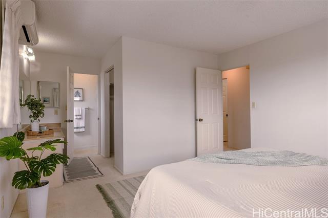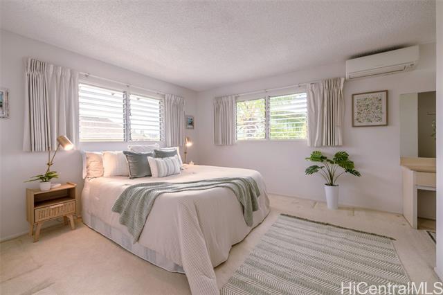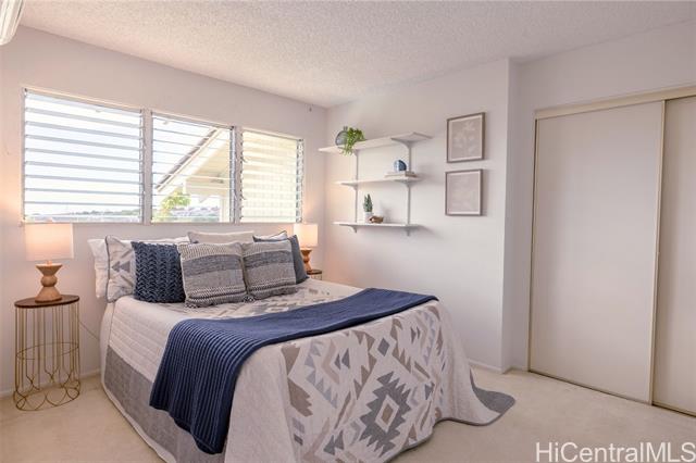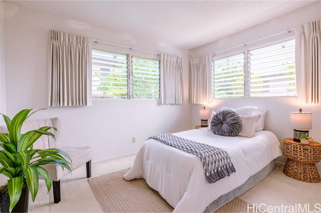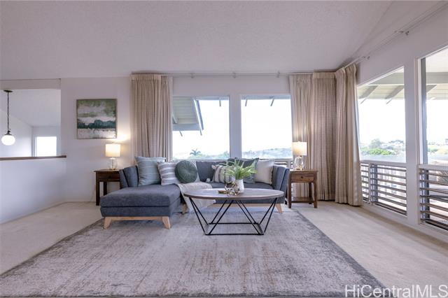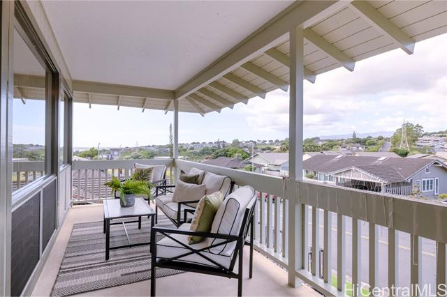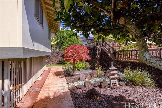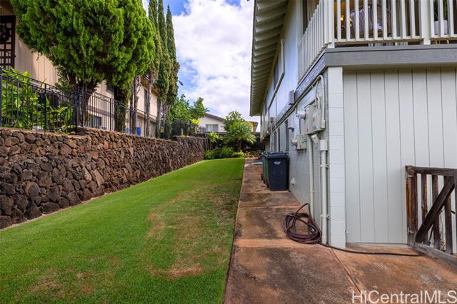 FIRST TIME ON THE MARKET IN DESIRABLE NEWTOWN ESTATES! This 2 story, split level, 4-bedroom, 3-bath residence features 5 split A/C units throughout, a fully fenced yard, and mature landscaped grounds with producing Meyer Lemon trees. The 4th bedroom is considered a "rumpus" room and is located on the bottom level of the home with an en-suite full bath. Enjoy indoor-outdoor living in a peaceful neighborhood with 16 leased photovoltaic panels, paid in full for energy efficiency. Enjoy Pearl Harbor views and sunsets from the covered lanai. A wonderful opportunity to own a thoughtfully cared-for home in an established community.