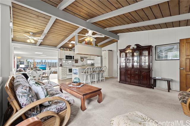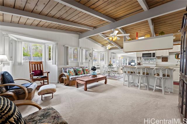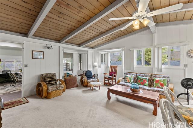 E komo mai! Hale Aloha - a spacious and unique family home in Pacific Palisades. Very attractive curb appeal, with a beautiful Honu mosaic wall, secured parking, PV gates and rocks walls. A semi-enclosed space is adjacent to the carport, perfect for a man cave, kid zone, craft area, party room - your choice. The interior is large, bright and welcoming. Extended bedrooms. The family room opens to a large covered patio, with peekaboo ocean views. The level yard would be great for children or pets. Some areas not reflected in tax records.