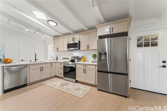 Welcome home to this completely renovated and charming 4-bedroom, 2-bathroom home nestled in the desirable Upper Pearl City neighborhood. This stunning property features a newly reimagined kitchen, complete with brand-new, energy-efficient appliances and beautifully installed flooring, ensuring both style and functionality. Situated on a generously sized 6,708 square foot lot, this home offers a comfortable 1,852 square feet of living area, providing ample space for comfortable living and entertaining, along with ample parking. Conveniently located in the heart of Pearl City, this home offers easy access to a wide array of local amenities, making daily life convenient. This property features a tranquil, fully fenced outdoor space, guaranteeing privacy and creating an inviting sanctuary. Please DO NOT enter the Property without the listing agent. Schedule your viewing today!