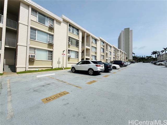 Pearl Ridge Garden & Tower – Conveniently located near Pearlridge Shopping Center, dining, and bus lines. This well-maintained 1-bedroom, 1-bath unit features window A/C, one assigned parking stall, and has been freshly painted in move-in ready condition. Enjoy relaxing on the lanai with views of Pearl Harbor. Secured building with resident manager on site. Amenities include community laundry, ample guest parking, car-wash area, two swimming pools, kiddie pool, dog park, and recreation room. Building is 100% hurricane insured.