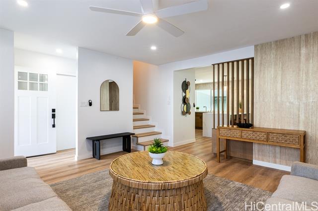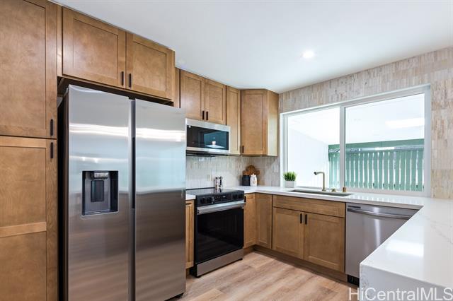 Beautifully renovated and turnkey, this spacious 4-bedroom, 2.5-bath Aiea townhome offers just under 1,500 square feet of thoughtfully designed living space, perfect for growing families. The home features a tasteful modern renovation, all new appliances, and a secure covered patio area ideal for relaxing or entertaining. Residents enjoy community amenities including a playground for children, two swimming pools, and ample guest parking. Conveniently located within walking distance to Pearlridge Center, just 10 minutes to the airport, and close to shopping, dining, and major freeway access, this move-in-ready home offers exceptional value in today’s market and combines comfort, style, and unbeatable convenience.
