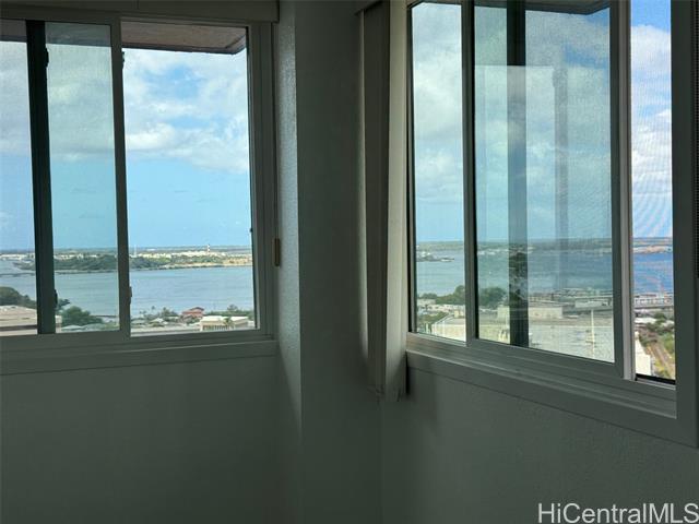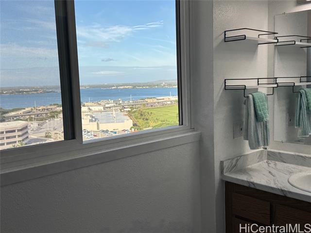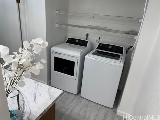 17th floor 2 bdrm/2 bath/2 covered pkg stalls, just renovated with luxury vinyl plank with 73% sound proof underlayment throughout the unit. Both bathrooms were totally renovated with own shutoff valves, new pipes, new toilets and more. New washer/dryer were installed. Split system AC with two unit (Living room/Primary/Main bedroom). Both bedrooms' window were replaced with newer UV control windows. No more popcorn ceiling and new paints throughout. Beautiful Pearl Harbor View from both bedrooms and Lanai area. Very bright and cool unit. Split system AC was recently service by Hydrokleen. Fire sprinklers are in the unit and currently Emergency Radio System is also installed soon-(A and B building are done). 100% Hurricane insured. Great Amenities with Pool, Jacuzzi and 2 tennis courts and 2 areas of BBQ with private grassy parks. Surrounding by beautiful Plumeria trees in Koauka Loop. Across from Pearl Ridge Mall, Longs Drug store, Bus stop and Bank and Pali Momi/Kaiser hospitals and many restaurants in neighborhood.
