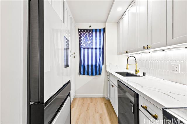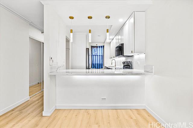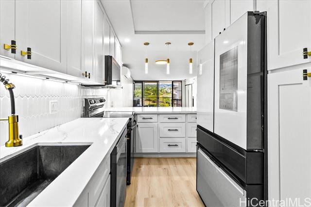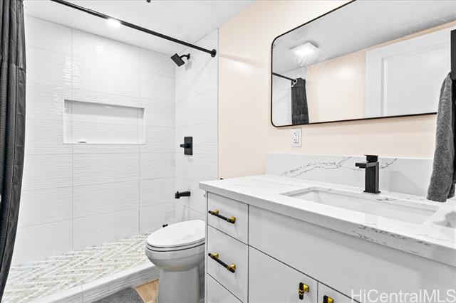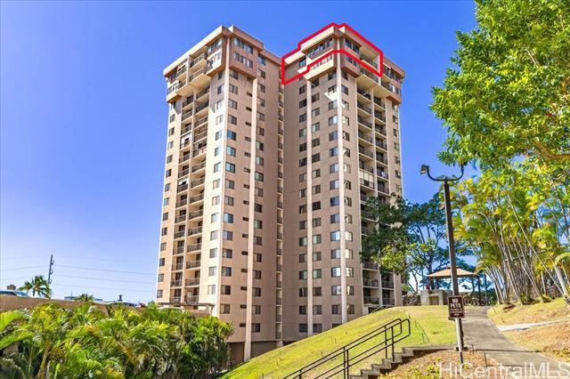 Move-in ready! This beautifully renovated 3-bedroom, 2-bathroom unit features over $100,000 in upgrades, including all-new plumbing pipes for the entire unit, an open kitchen with brand-new appliances, new split A/C units, and modern finishes throughout. Enjoy the spacious lanai and the comfort of living on the penthouse floor. The home also includes an in-unit washer and dryer and 2 gated, covered parking stalls. The building is well maintained and equipped with a full sprinkler system. Resort-style amenities include a large pool deck with a Jacuzzi, heated pool, tennis/pickleball courts, guest parking, gazebo with picnic tables, BBQ area, car wash stalls, walking paths, security guard, and more! Conveniently located near T.J. Maxx, Pearlridge Center, restaurants, and freeway access.