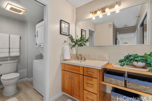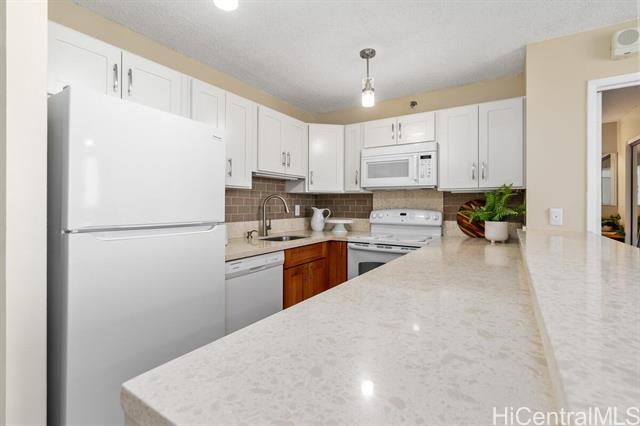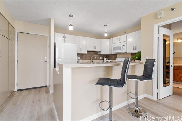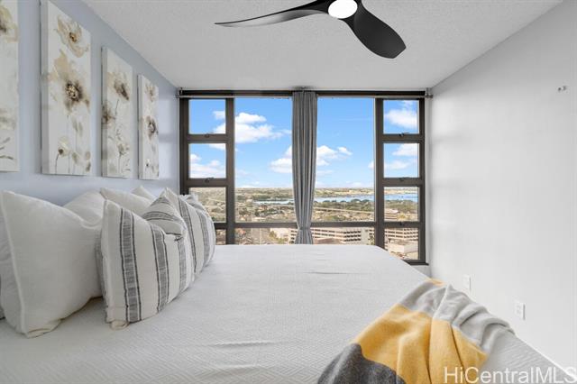 Welcome home to this renovated & furnished high-rise gem in the highly sought-after Pearl Regency building! Perched on the 22nd floor, this bright and airy condo offers panoramic views of Pearl Harbor, a glimpse of Diamond Head in the distance along with gorgeous sunrises & sunsets lighting up the ocean sky. Step inside to discover your recently revamped unit featuring LVP flooring, shaker style cabinets, stone kitchen countertops, new paint throughout & an updated bathroom. Added conveniences include an ultra quiet A/C, ceiling fans, in-unit washer/dryer & more. Centrally located just minutes from Pearl Harbor, Hickam AFB, the airport & major freeway access (H-1, H-2,H-3), this home offers unbeatable convenience for work and play. The Pearl Regency community provides resort-style amenities including a swimming pool, jacuzzi, sauna, tennis courts, BBQ area, exercise room, playground, clubhouse, and recreation areas—perfect for entertaining or relaxing. The MANDATORY in-unit sewer upgrades have already been completed by the homeowner to ensure a smooth and stress free move in. Don't miss your chance to live in comfort, style, and convenience in the heart of Aiea!