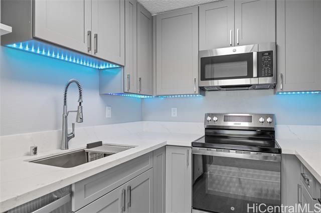 Looking for a move-in ready unit in the Aiea/Pearlridge area? Beautiful fully remodeled 2 bedroom, 1 full bath unit in the Pearl 2 condominium building on the 2nd floor comes w/1 assigned parking stall. Amazing condo awaits for a new owner to call it home. New kitchen w/stainless steel appliances, quartz counter tops, single-double sink, cabinets, bidet toilet, new shower, double sinks in bathroom w/quartz counter tops, laminate wood flooring, ceiling fans with lights, and new lighting throughout unit. Conveniently located minutes away from Hickham AFB, Fort Shafter, Pearl Harbor, Pearlridge, airport, shops, restaurants, grocery stores, golf driving range, and much more!
