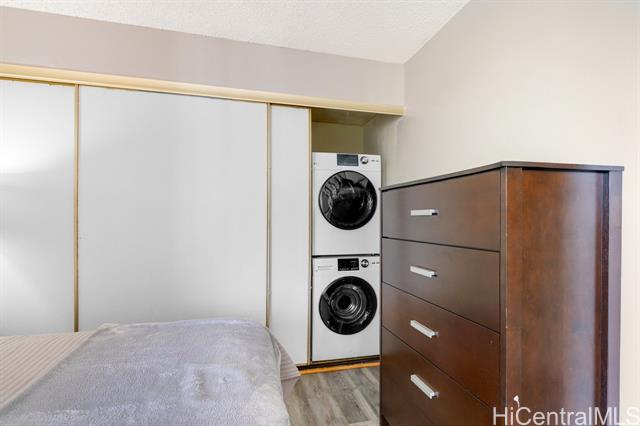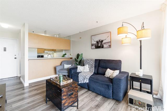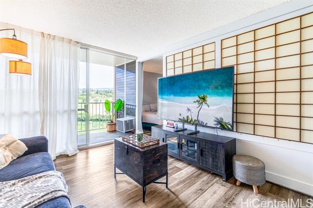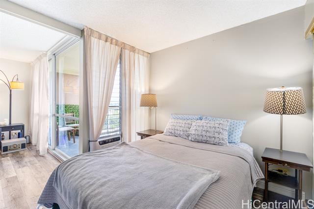 Well-maintained studio at The Highlander offering comfort, functionality, and thoughtful upgrades. This unit features new vinyl flooring throughout, a full kitchen with a brand-new dishwasher, and a renovated full bathroom. Enjoy the convenience of an in-unit washer and dryer, along with a window AC unit for added comfort. A unique sectioned-off area with shoji doors provides flexibility and privacy for a dedicated sleeping space. Relax on your private balcony overlooking the golf course, perfect for unwinding and enjoying the view. The Highlander is a well-managed building with an array of amenities including a pool, hot tub, fitness center with saunas, recreation room, and BBQ area. This unit also includes one covered parking stall and assigned storage, offering both convenience and added value. Ideally located in close proximity to Pali Momi Medical Center, Pearlridge Center, and Pearl Kai Shopping Center, offering easy access to shopping, dining, and essential services.