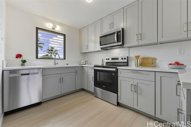 Recently updated, featuring quartz countertops, solid wood cabinetry, a new shower, toilets, sinks, vinyl flooring, fresh paint, modern light fixtures throughout, and brand new appliances. Situated in the sought-after Tropicana Village in Aiea, opposite Pearl Country Club and just minutes from Pearlridge Mall. This 3-bedroom, 2.5-bath townhome delivers an ideal combination of comfort, style, and convenience with separate living and dining areas, 2 storage spaces, an oversized 2-car garage, plus additional 2-3 car driveway parking. Generous lanai ideal for morning coffee or evening unwinding. Excellent location provides convenient access to shopping, restaurants, parks, schools, major highways, both on the Honolulu or west side.