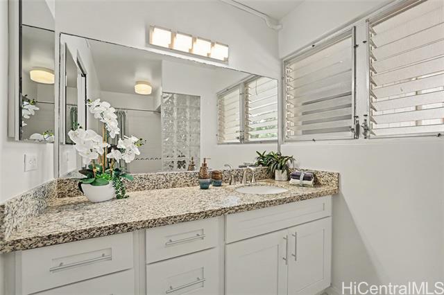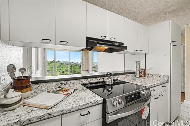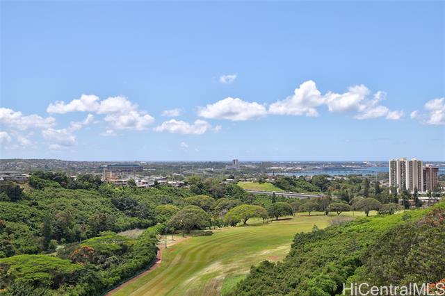 Welcome home to Colonnade on the Greens! This 2-bedroom, 2-bath unit features new kitchen countertops and vinyl flooring throughout, along with a preferred floor plan that places the bedrooms on opposite sides of the living room. The upgraded bathrooms and walk-in closet in the primary bedroom add to the appeal. Enjoy unobstructed views of the golf course, ocean, coastline, sunrise, and mountains from the living room, bedrooms, and lanai. The complex offers a range of luxurious amenities, including a game room, swimming pool, jacuzzi, exercise room, half basketball, handball, tennis, and pickleball courts, indoor golf driving range, car wash, gas BBQ, surfboard and bicycle storage racks, picnic benches, children's playroom, dog park, meeting and recreation rooms, guest parking, pest control, and 24/7 security with video surveillance. Conveniently located near the famous Pearlridge Shopping Center, various restaurants, Pali Momi Hospital, schools, H-1 on ramp, and more!