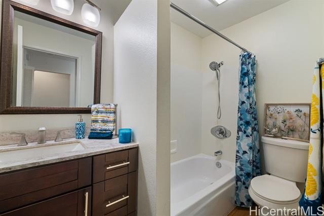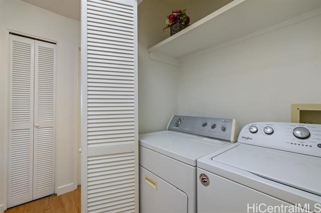 Move right into this beautifully remodeled, turnkey 2-bedroom, 2-bath single level townhome located in the highly desirable Waiau Garden Villa community of Pearl City. This pet friendly unit features an open and inviting floor plan with quartz countertops, tile and luxury vinyl flooring throughout. The beautifully designed and highly functional kitchen offers ample counter and cabinet space with stainless appliances. Enjoy the convenience of a full size washer and dryer, windows, AC, ceiling fans, modern fixtures, and water heater. Enjoy the evening breezes on your private lanai off of your primary living area. EV charging stalls just steps away to charge your electric vehicle! Conveniently located near shopping, grocery, dining, schools, parks, military bases, and easy access to freeway on and off ramps.