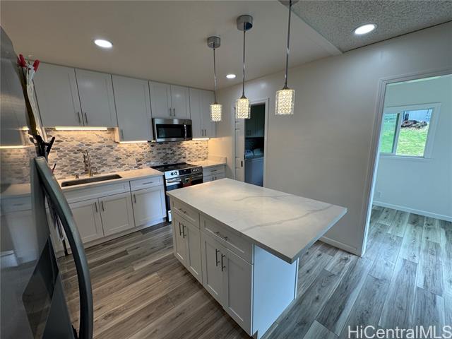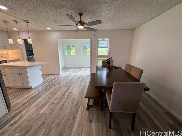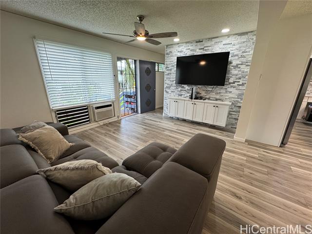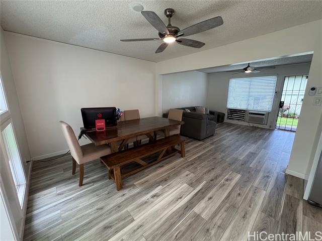 TWO SIDE-BY-SIDE PARKING STALLS! Low maintenance fee – just $575/month! This well-maintained 3-bedroom, 2 FULL bath townhouse (tax records show 1.5 baths) features a spacious open-concept layout with 2022 renovations. The enclosed lanai has been converted into a separate laundry room with storage and a home office. Recessed lighting enhances the living room, kitchen, and office areas. Pantry and laundry rooms feature convenient pocket doors that save space and improve flow. A stylish accent wall with TV mount included adds a modern touch. Move-in ready! Conveniently located near Pearl Harbor, Pearlridge Mall, schools, shopping, dining, and easy freeway access. Contact your Realtor to schedule a private showing before the First Open House. Owner-occupied. First Open House: Sunday, March 8th, 2026, 2–5 PM.