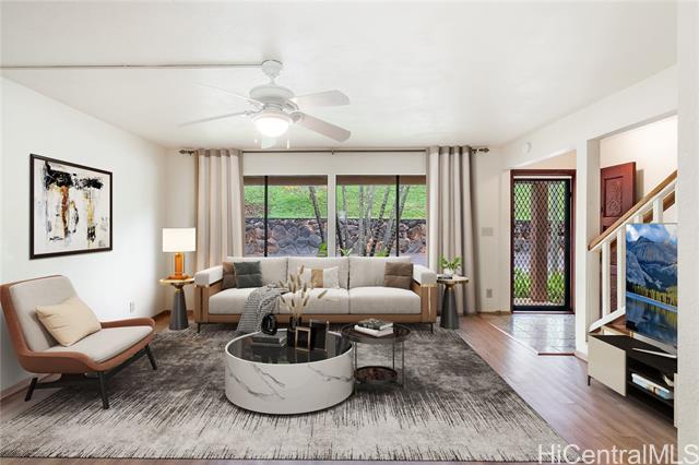 Welcome to Wailuna, where opportunity meets possibility. This 3-bedroom, 2-bath split-level townhome is ideal for first-time buyers and families looking for a solid long-term living option in one of Pearl City’s most desired communities. The home is in mostly original condition, making it a great fit for those who want to design, renovate, and customize the space to their own taste and style. The functional layout offers good natural light, spacious bedrooms, and a comfortable main living area with great potential. Families will appreciate the central location near schools, parks, shopping, and freeway access, while investors will value the strong demand for rentals in this established neighborhood. Enjoy the convenience of a 2-car garage and access to Wailuna’s amenities, including pools, hot tubs, tennis courts, and recreation areas. Whether you’re buying your first home or looking for a place to put down roots, this townhome is a wonderful opportunity to make Wailuna your home. Please note: Some photos have been virtually staged to help showcase the home’s potential.
