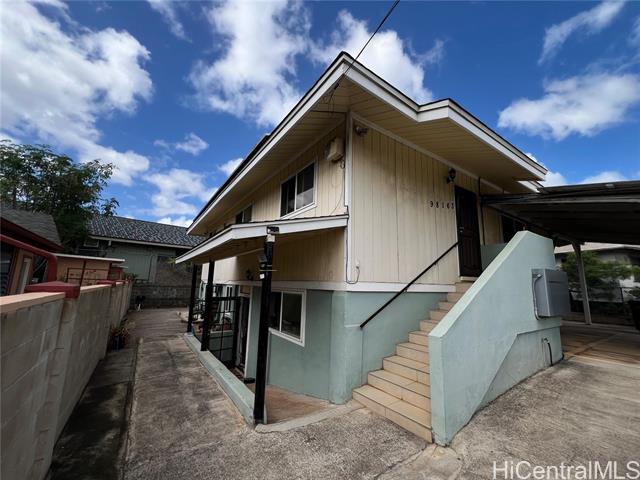 Two-story single-family home in convenient Pearl City location. Upper level features 3 bedrooms and 2.5 baths with Daikin split AC units in three bedrooms,additional covered space and separate entry. Lower level offers 3 bedrooms and 2 baths with approximately $2,450 monthly rental income, plus a separate studio unit generating $1,500 per month. Total of 61 pieces owned solar panels help reduce electricity costs.Spacious carport fits up to 5 cars.Large yard with ample backyard space.Coin washer and dryer provide additional income. Ideal for multigenerational living or investment with strong income potential.Close to shopping, schools,and freeway access.Number of rooms may different from tax records.