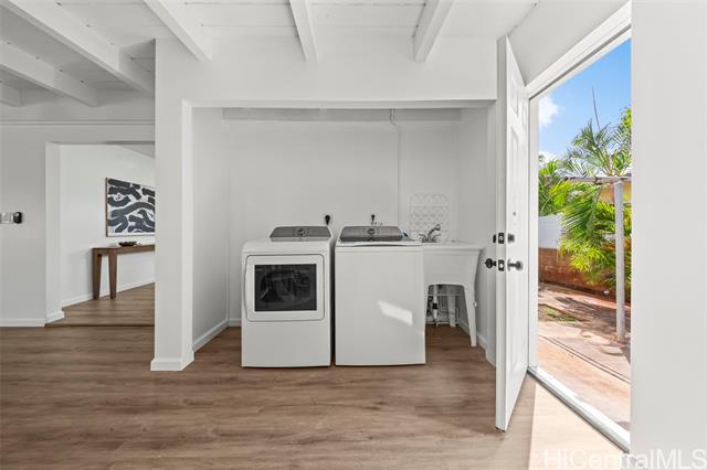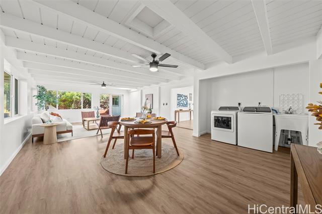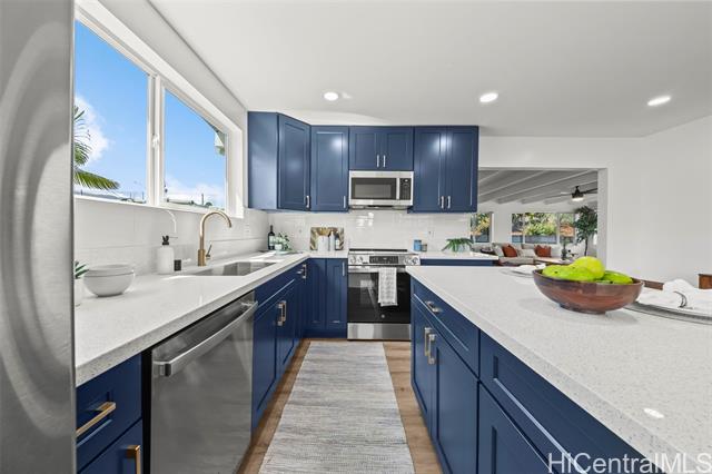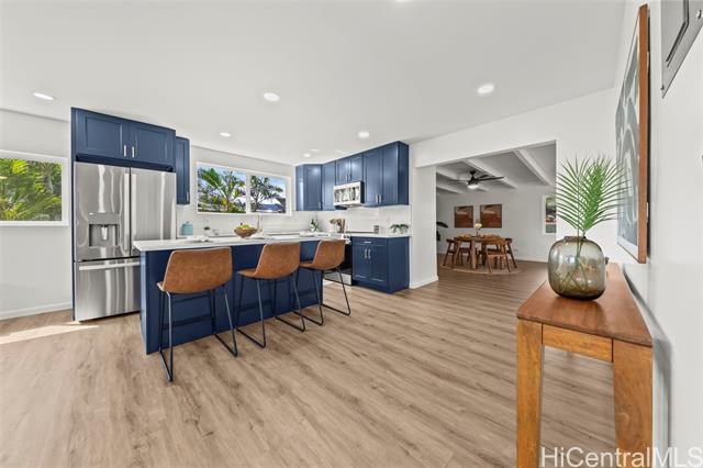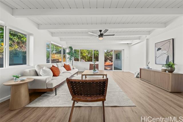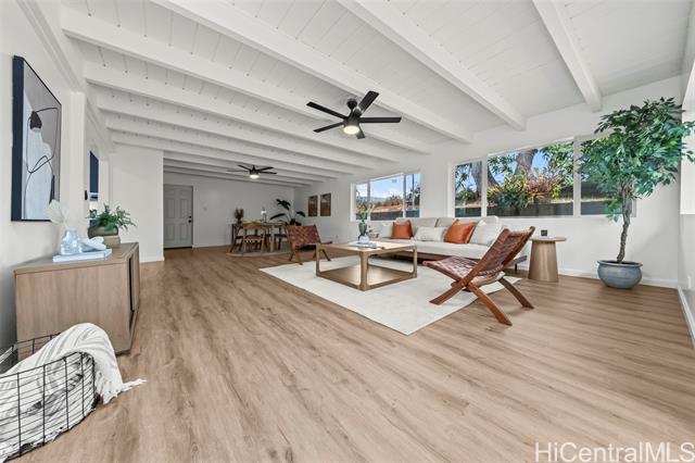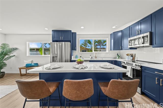 Experience island living at its finest in this beautifully renovated 4-bedroom, 2-bath single-level home designed for comfort, functionality, and modern style. Come inside to a bright, open layout with luxury vinyl plank flooring throughout and seamless flow between the living, dining, and kitchen areas. The stunning kitchen features a large island, brand new stainless steel appliances, and custom cabinetry — perfect for entertaining or everyday enjoyment. Every detail, from lighting to finishes, has been thoughtfully selected to create a warm and inviting atmosphere. The landscaped front yard with sprinkler system offers curb appeal and easy maintenance, while solar panels provide energy efficiency and long-term savings. Conveniently located near schools, parks, shopping, and dining, this move-in ready home blends quality renovation with timeless island charm. Description may not match tax records.