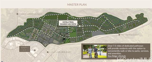 SPACIOUS, STYLISH, EFFICIENT. Now available - this highly desirable Plan F model at Nanea III in Koa Ridge! This brand new 4 bedroom, 2.5 bath home features 2 primary bedroomes and an extended covered lanai - ideal for indoor/outdoor living. Interior finishes include rustic oak cabinets, sleek quartz counter tops in kitchen, and HI-MACS solid surface counter tops in baths, and recessed lighting with dimmers. Stay cool year-round with split AC units in every room. Energy efficient features include a solar water heater, EV-ready outlet, and is PV-ready for future solar panels. Exterior modern finishes include hurricane-resistant windows, sliding doors, and a hurricane-code steel garage door for added peace of mind. Enjoy the convenience of being just minutes from Costco, Foodland, shopping, dining, parks, and freeway access. Located in one of Central Oahu's most desirable maser-planned communities. Ask about special below-market financing options!