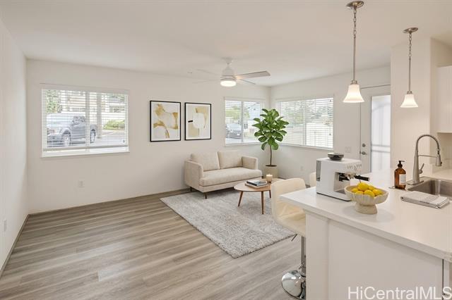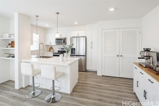 Welcome to Malina at Koa Ridge, a thoughtfully planned community in Central O'ahu featuring newer construction and modern living. This rarely available 2-bedroom, 2-bath, 2-parking unit, built in 2022, offers a clean, upgraded, and move-in ready interior. Enjoy the convenience of two parking stalls, access to EV charging stations, and proximity to Kalahikiola Park, Costco, restaurants, shopping, and easy freeway on/off ramps within the growing Koa Ridge neighborhood. This home is part of an affordable housing program regulated by the Department of Planning and Permitting (DPP) and is subject to eligibility requirements. Buyers must be a qualified household earning no more than 120% of the Area Median Income (AMI), with a household size of 2 to 5 occupants. The unit is subject to a 10-year resale restriction, and the new owner must agree to comply with the remaining term. Owner-occupancy is required, and resale is limited to qualified buyers at a regulated price. Please refer to Supplements for income limits, application requirements, and additional details. (Enhanced Photos)